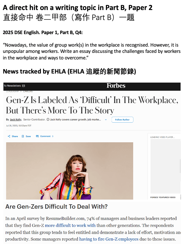 EHLA's Topic Bank and Material Pool Proves Good Coverage of 2025 DSE English Real Exam Topics
