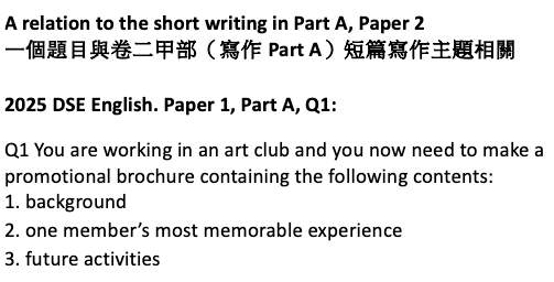 - A relation to the short writing in Part A, Paper 2